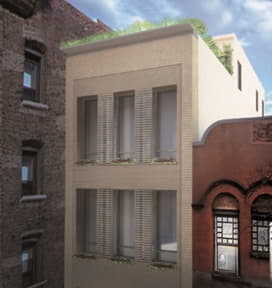 This ground-up building faces an inner-block garden on 6th Street in the East Village. A desire for full expanses of glass to view the garden and the skyline beyond presented a challenge with the heat gain associated with direct southern exposure. The design includes flexible, folding