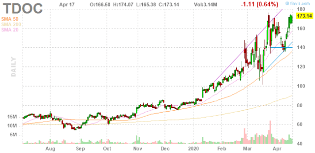 Despite the huge surge in demand, Teladoc Health (TDOC) has seen the stock rise far in excess of the benefits of potentially one-time patients in the midst of pandemic fears. My investment thesis turned more neutral on the stock back in March and the surge above $170 is time to get out of virtual healthcare provider to conserve capital for lower prices.