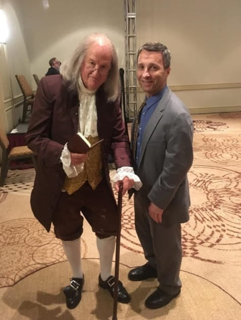 Mark Skousen, a descendant of Benjamin Franklin, meets with Paul Dykewicz in Philadelphia.